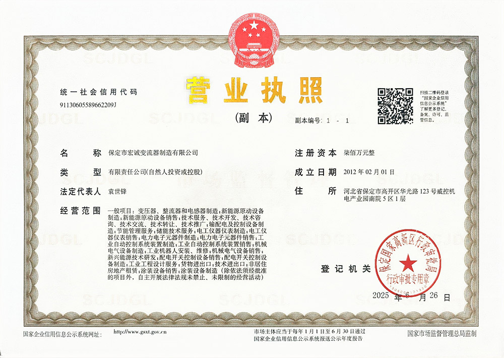• The Company has passed the comprehensive equipment testing from the third-party national center for power electronic technology. The product meets all tchnical performance requirements of JB/T8675.